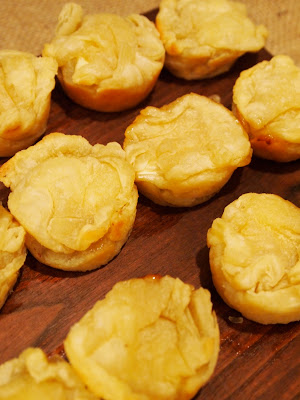 I'm sure you've been to a party where brie was served in a puff pastry. It's an appetizer that I always enjoy making and it always seems to be a hit. But as the party progresses and the brie cools down, frustration sets in. You go to dig into the brie and the cracker breaks, the brie won't spread and you now have cracker crumbs on your face. (Can you tell I'm trying to sell you on my great new recipe!?) Wouldn't it be handy if this appetizer was bite sized?!